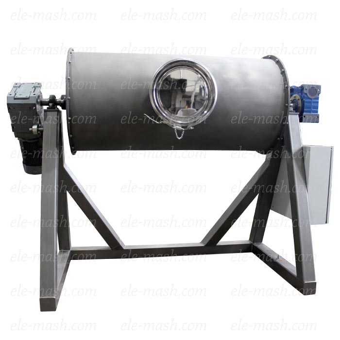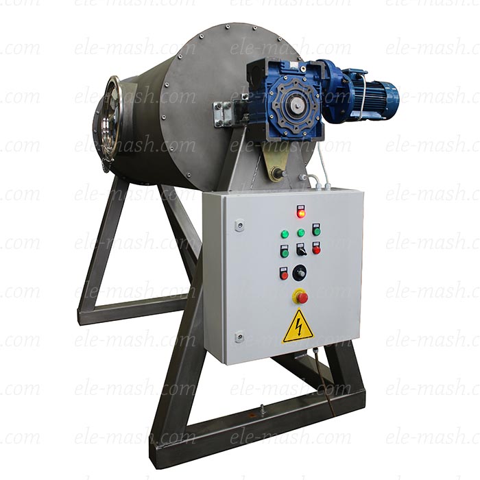 The construction of the paddle mixer consists of the frame, the tip-over drum with dividing blades, the cover, the drive and the control panels of the mixing and overturning processes.